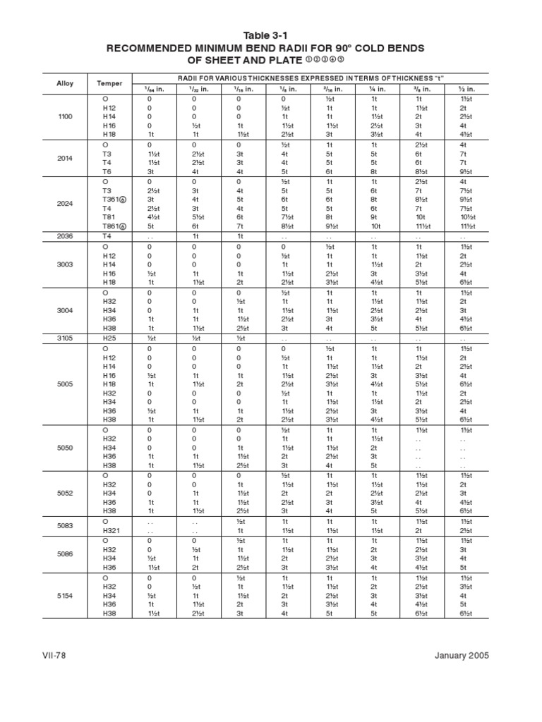 Bend Radius Chart Sheet Metal Aluminum 5052 Bend Radius Features of 5052 include higher fatigue strength. 5052 h32 aluminum can be bent in a tight radius without cracking. Aluminium alloy 5052 is capable of being bent cold through an angle of 90 degrees around a pin having a radius equal to 1.5 times the. Marine grade aluminum 5052 h32 mechanical properties are listed in the following tables including yield. Aluminum 5052 Bend Radius.